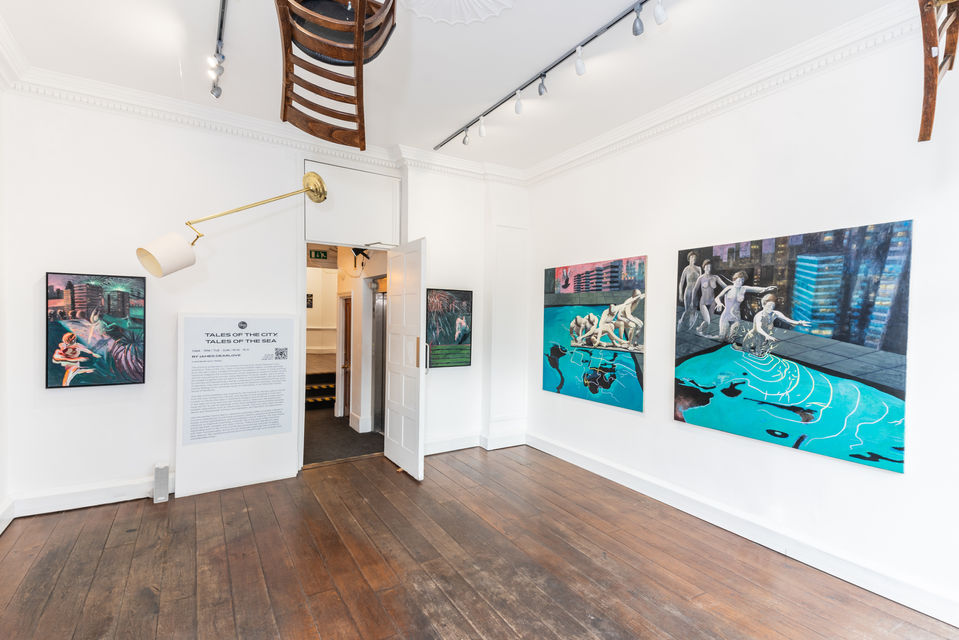 The title of this exhibition was inspired by the musician PJ Harvey’s album Stories from the City, Stories from the Sea, and alludes to the sea change that occurred when Dearlove moved from London to live by the coast in Southwest England; and his life as a queer person in the heart of a city and now the remote countryside. Dearlove’s life experiences have led him to use his paintings to blur and transgress the boundaries between dualistic oppositions such as natural and cultural, rural and urban, light and dark, desire and disquietude, intimacy and alienation, and figuration and abstraction.